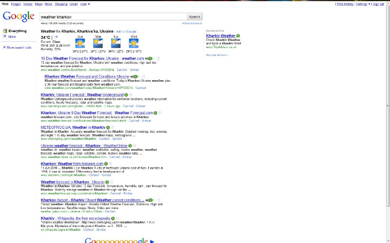 The summer weather in Eastern Ukraine is usually mild/warm with temperatures in the mid 20’s, however in June 2010 temperatures reached a staggering 36° which is almost unheard of in this part of the world. Checkout this screenshot from Google.
